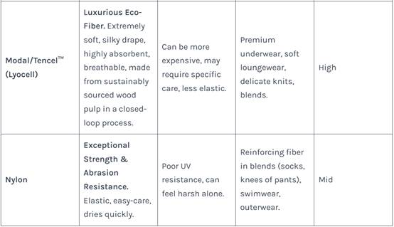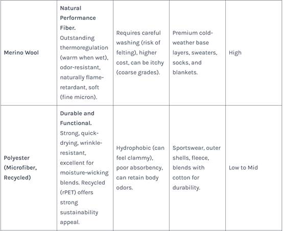The choice of fiber is the cornerstone of garment performance. The following table provides a detailed comparison.